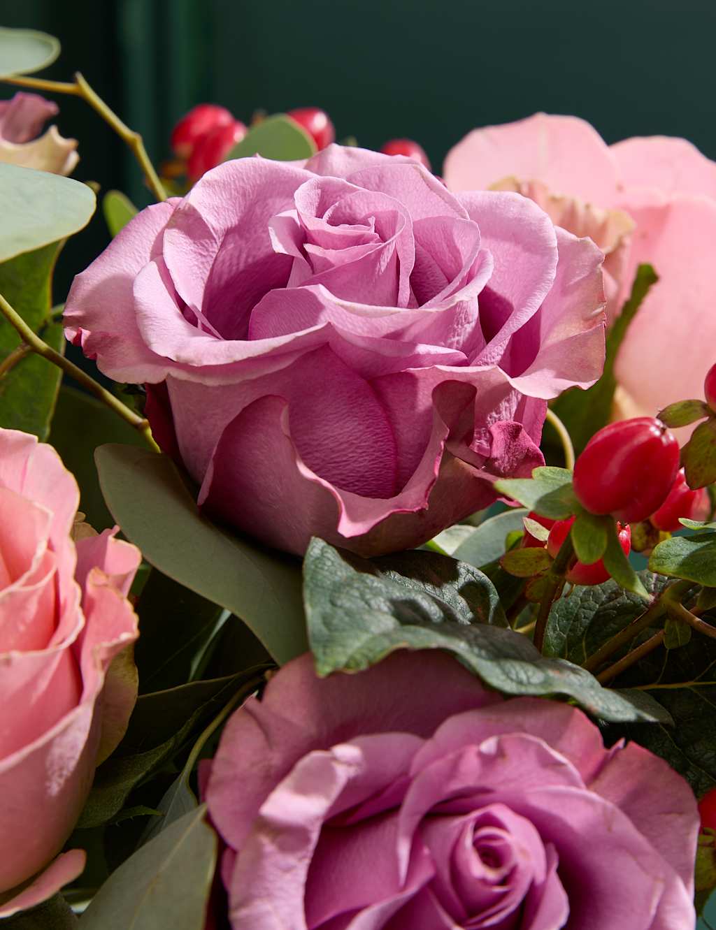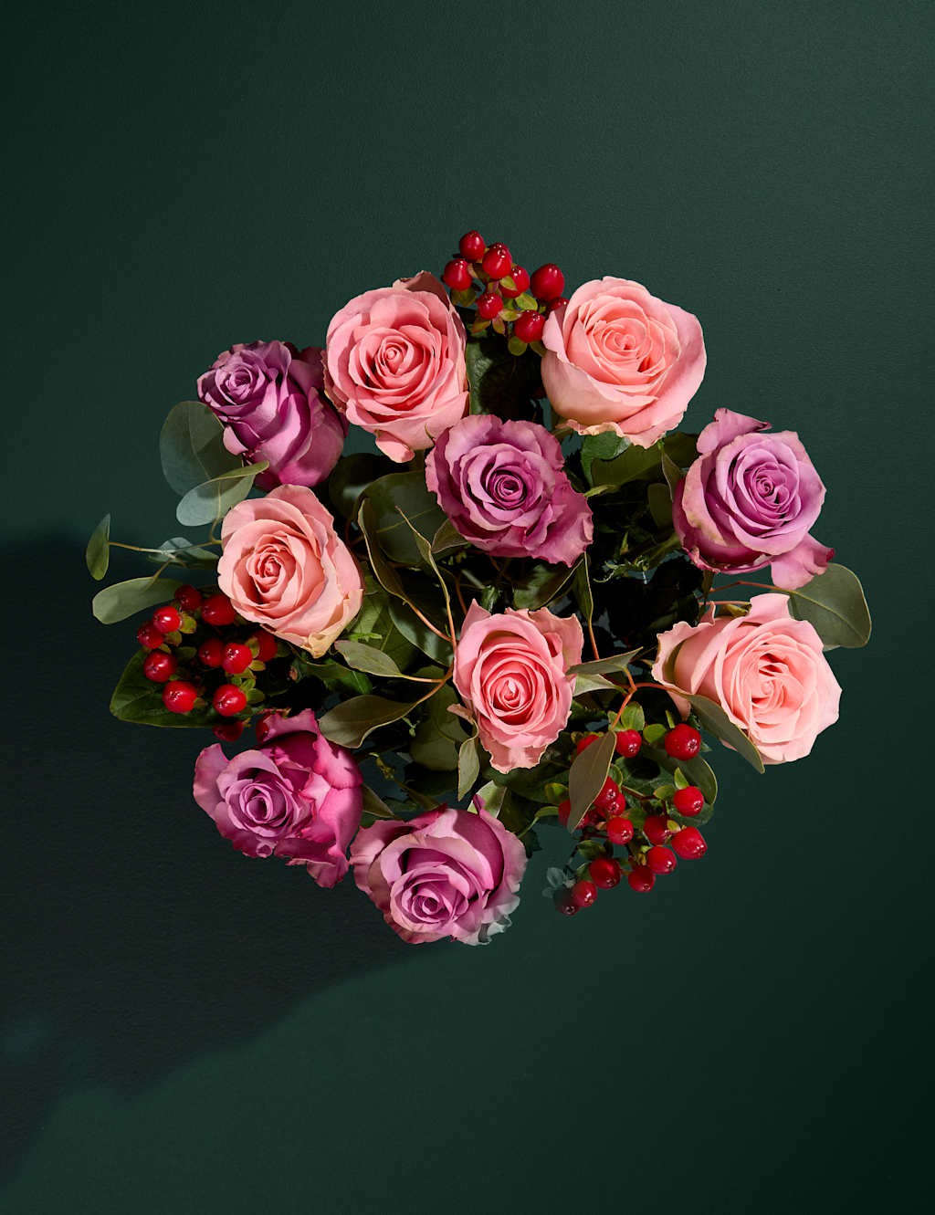 Rožu un asinszāles ziedu pušķis – graciozs romantikas un šarma apvienojums. Puķu kompozīciju veido dažādu toņu rozā rozes, koši sarkanas asinszāles un sezonāli zaļumi. Lieliski piemērots dažādiem dzīves gadījumiem vai vienkārši dienas uzmundrināšanai.