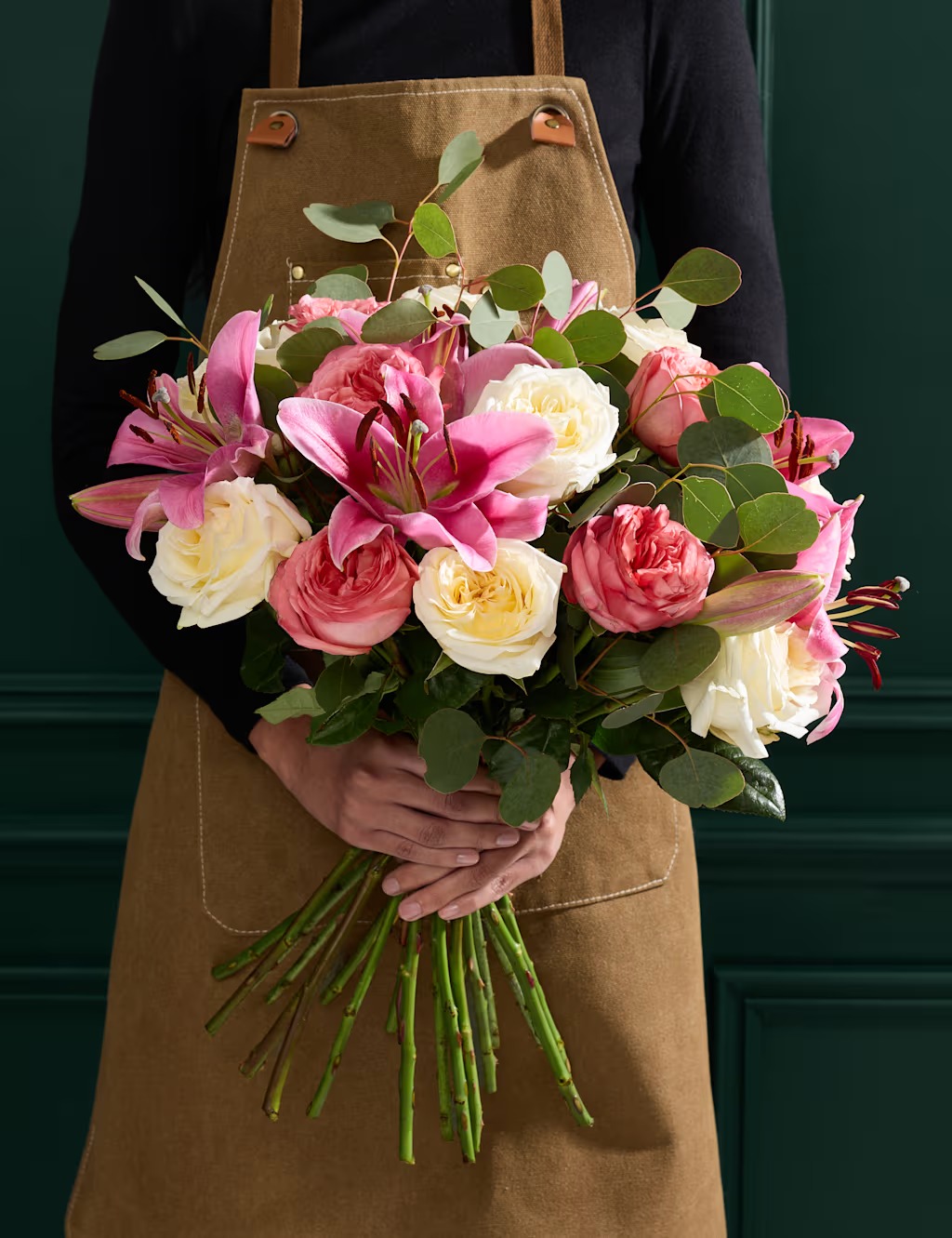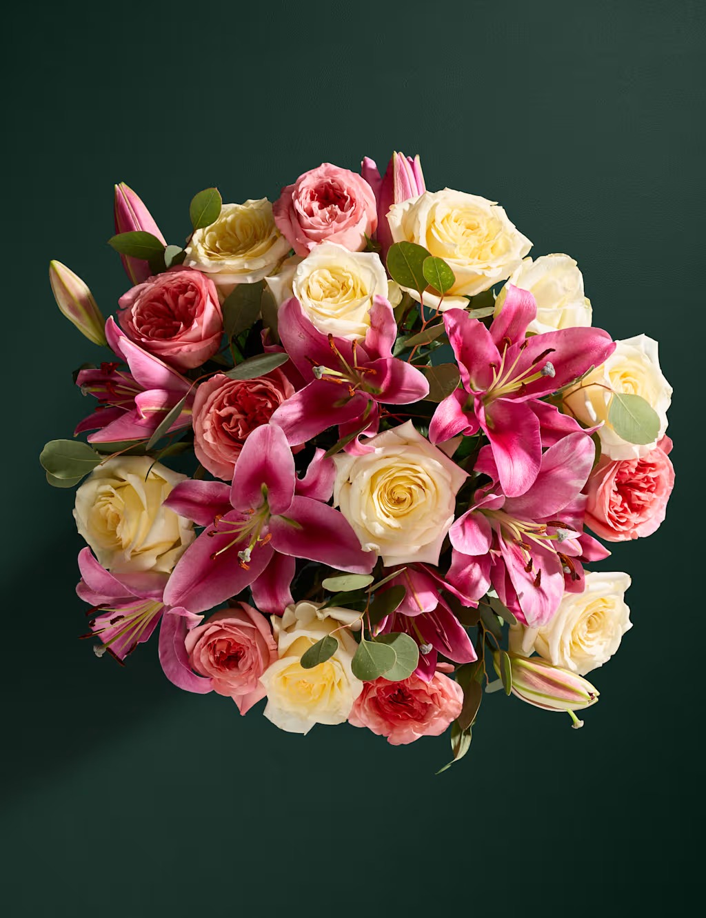 Izcelsiet skaistumu un izsmalcinātību ar satriecošu rožu un rozā liliju pušķi, kurā ir krēmkrāsas un rozā rozes, kā arī liliju elegantais šarms un svaigi sezonas zaļumi. Grezns un smaržīgs ziedu pušķis, kas lieliski piemērots īpašiem gadījumiem.