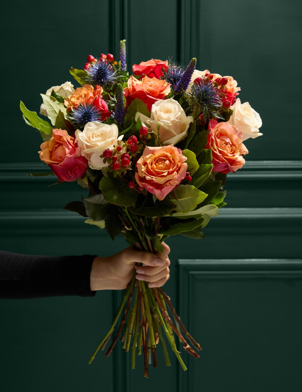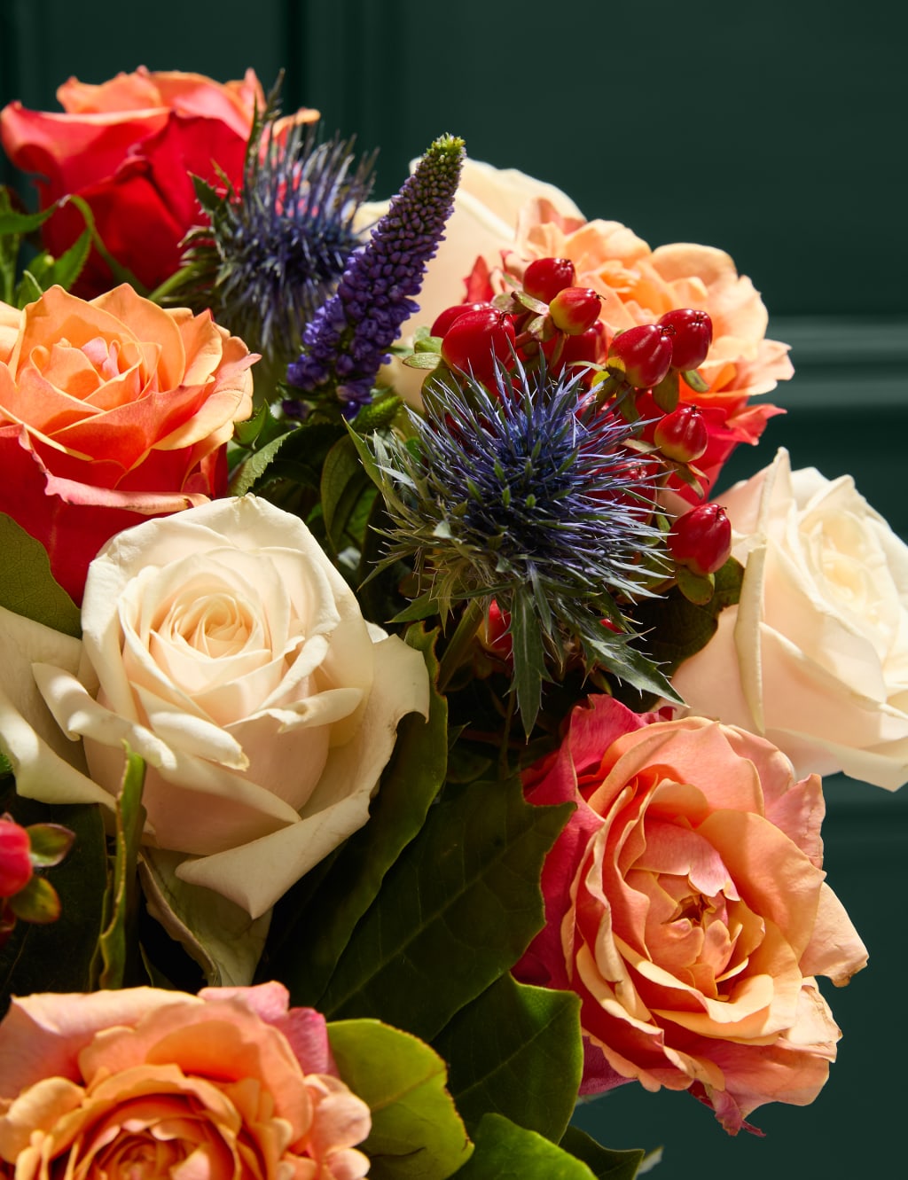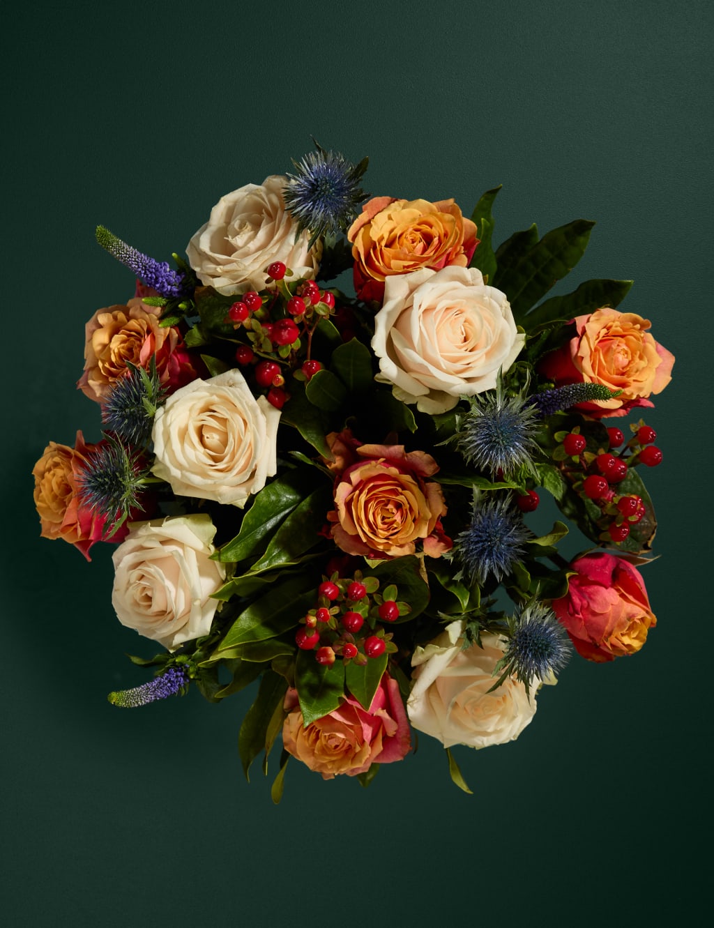 Spilgtiniet savu dienu ar šo rudenīgo ziedu pušķi rudens krāsās, kurā ietilpst oranžas un krēmkrāsas rozes, koši sarkanas asinszāles un violetas veronikas, kā arī sezonāli zaļumi. Ideāli piemērots jubilejai, dzimšanas dienai vai kā dāvana bez gadījuma.