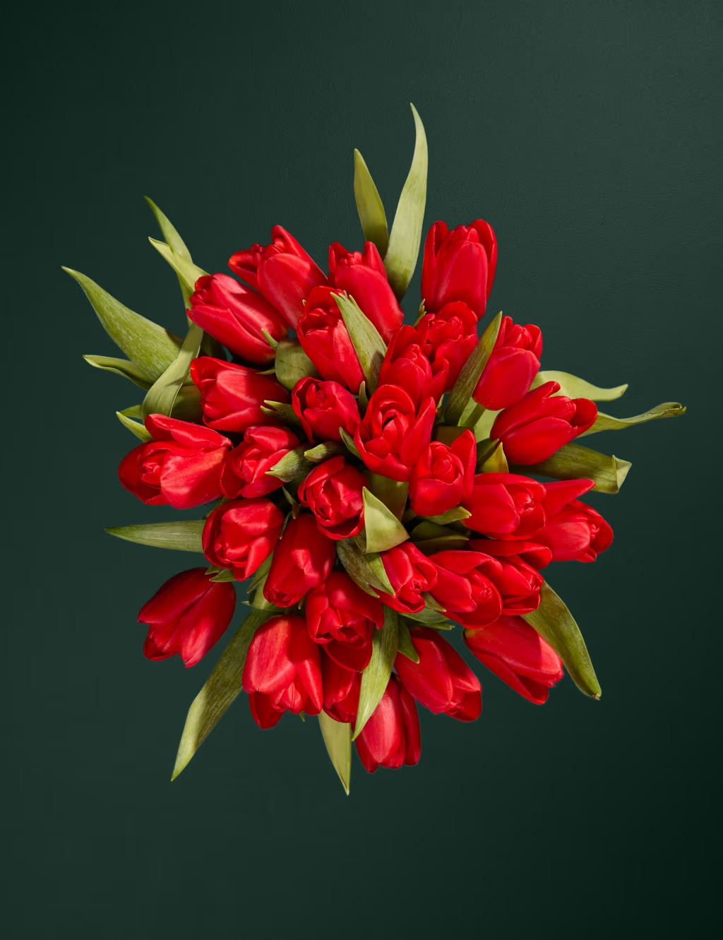 Sviniet katru dienu drosmīgi un kaislīgi ar sarkano tulpju ziedu pušķi. Šis ziedu pušķis ir lieliski piemērots ikvienam mirklim vai kā mājas dekors.