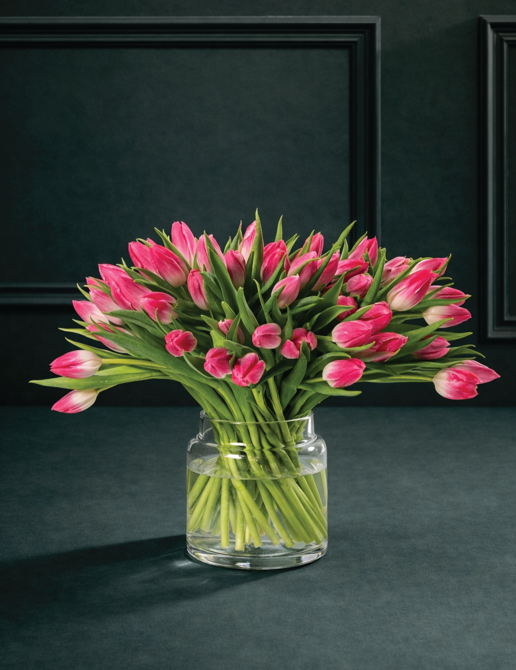 - Rozā tulpju ziedu pušķis